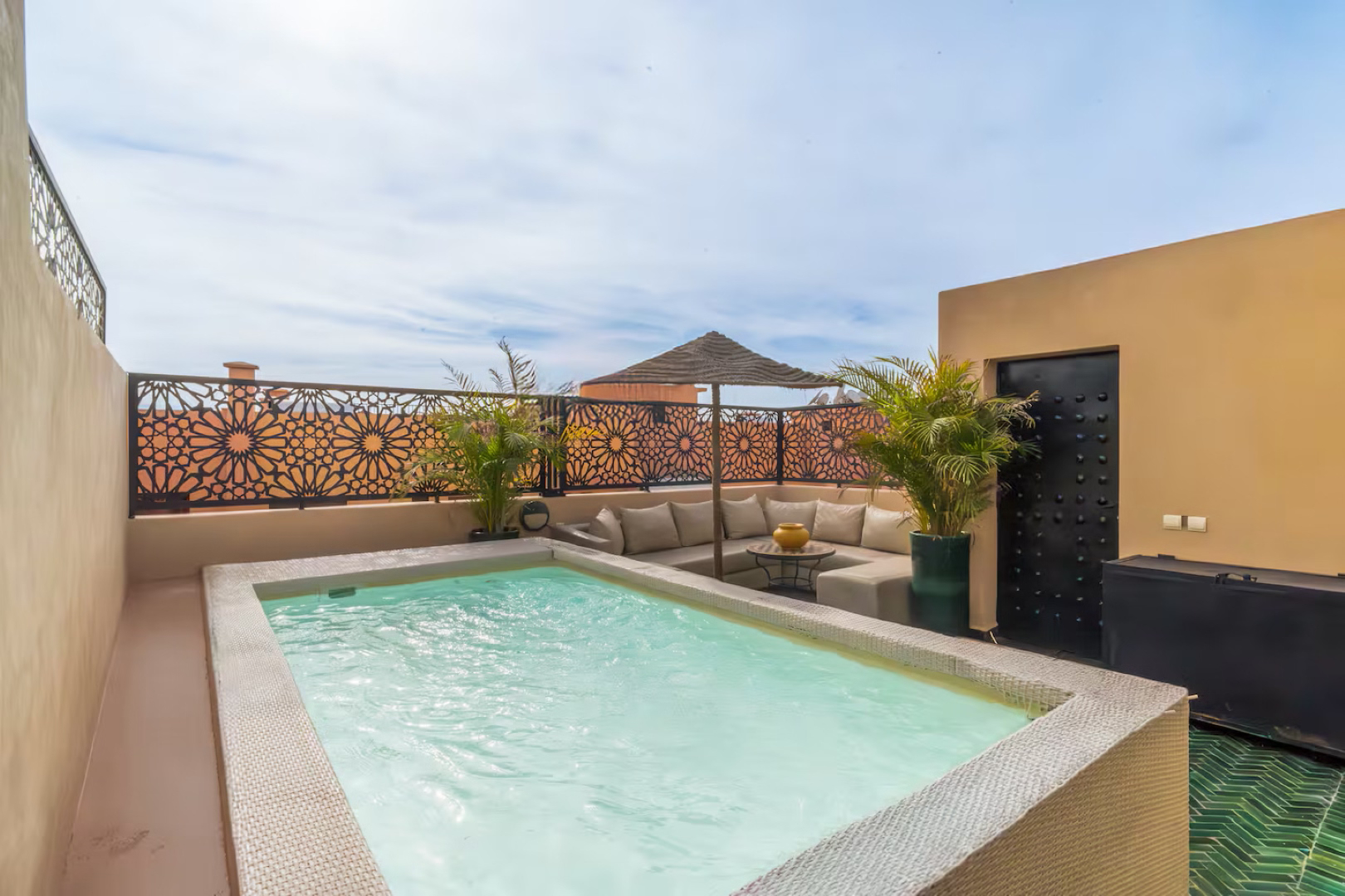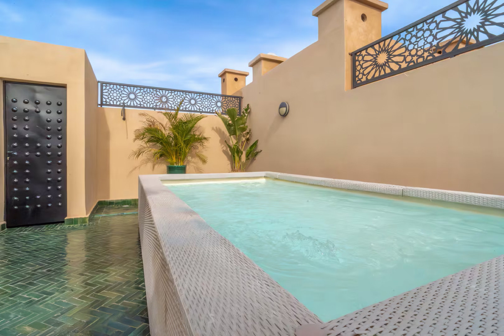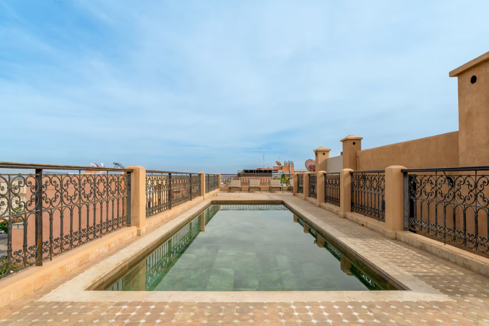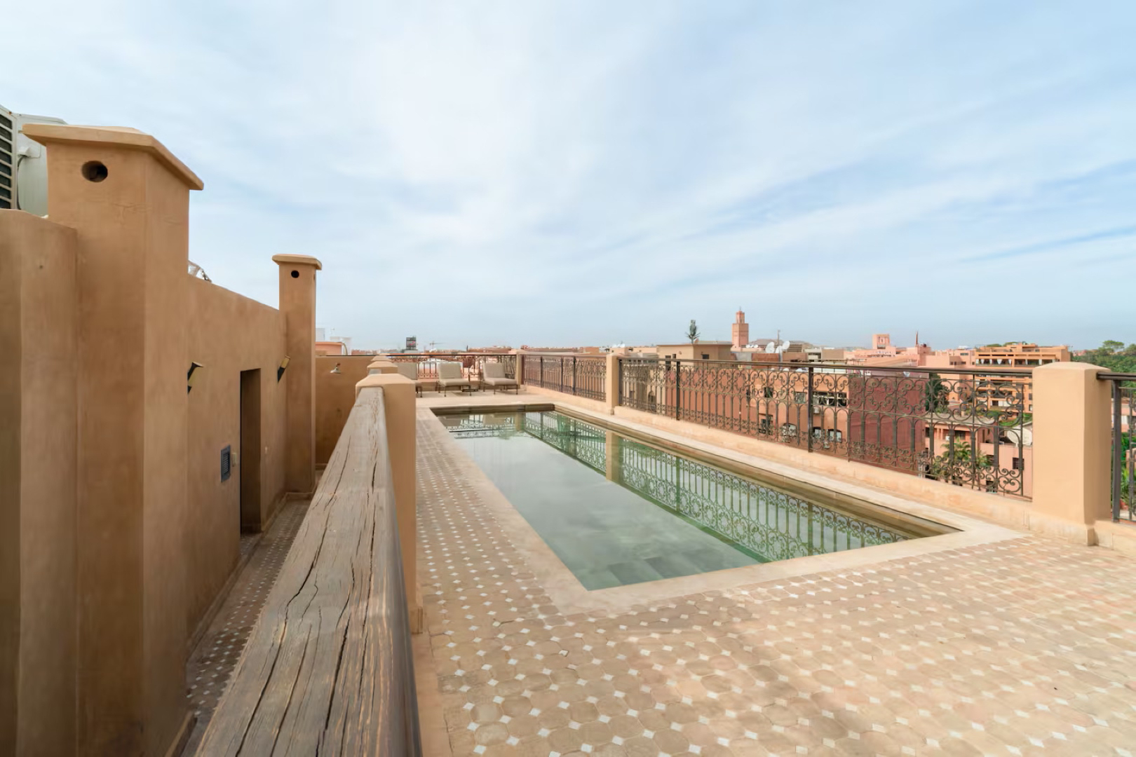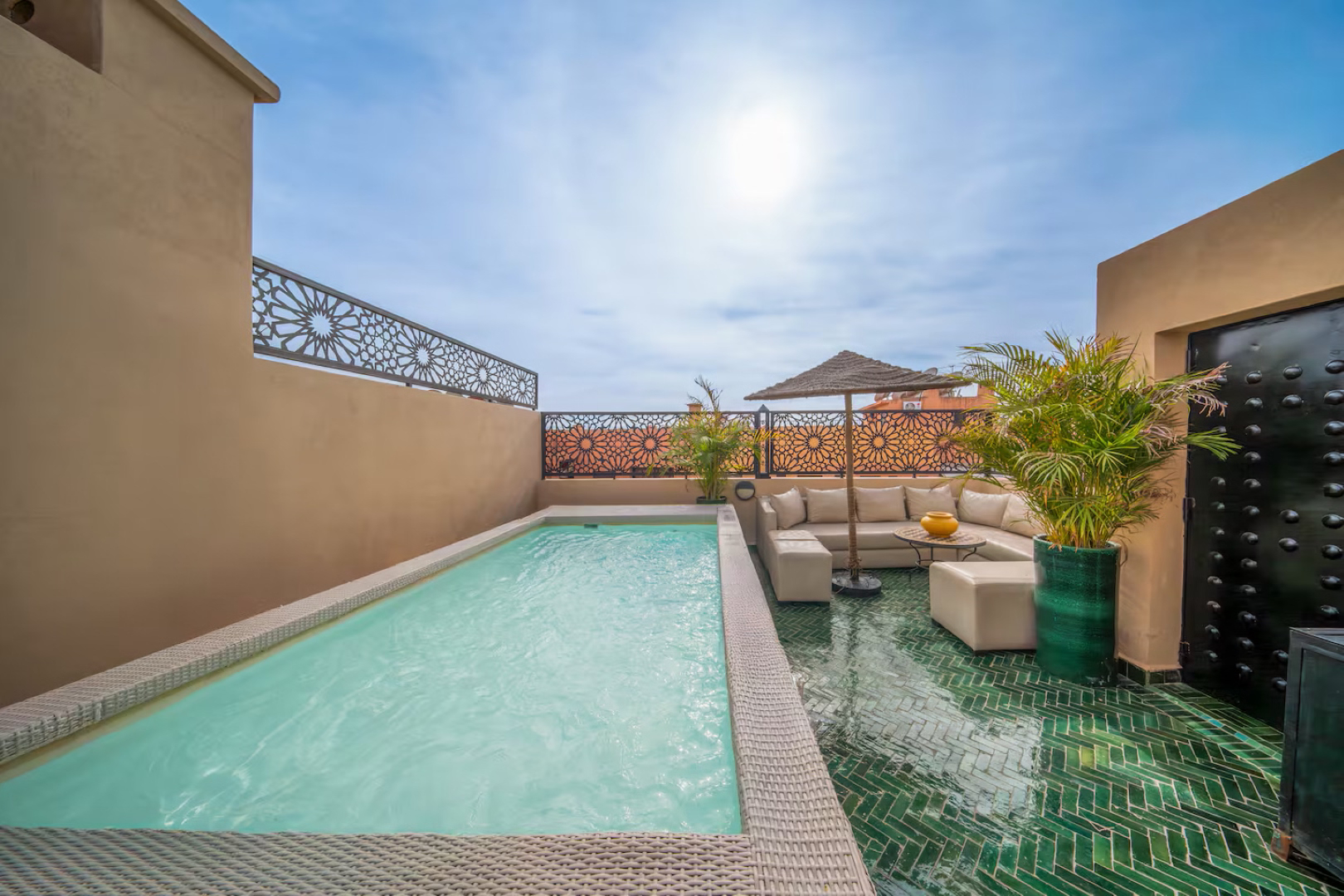 La terrasse vous offrira un moment privilégié de détente et de calme sous le soleil de Marrakech. Ainsi que la piscine privative entierement chauffée.