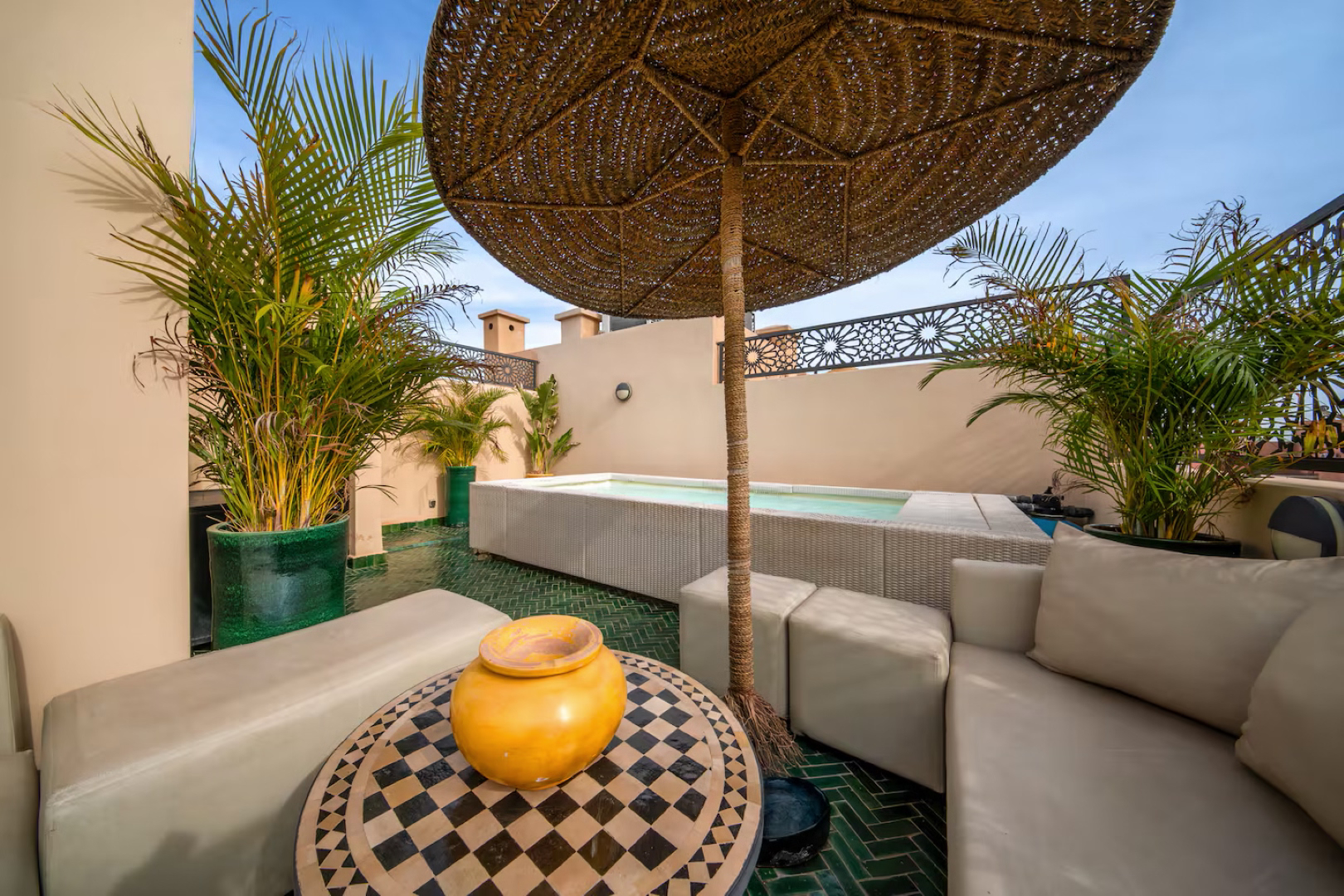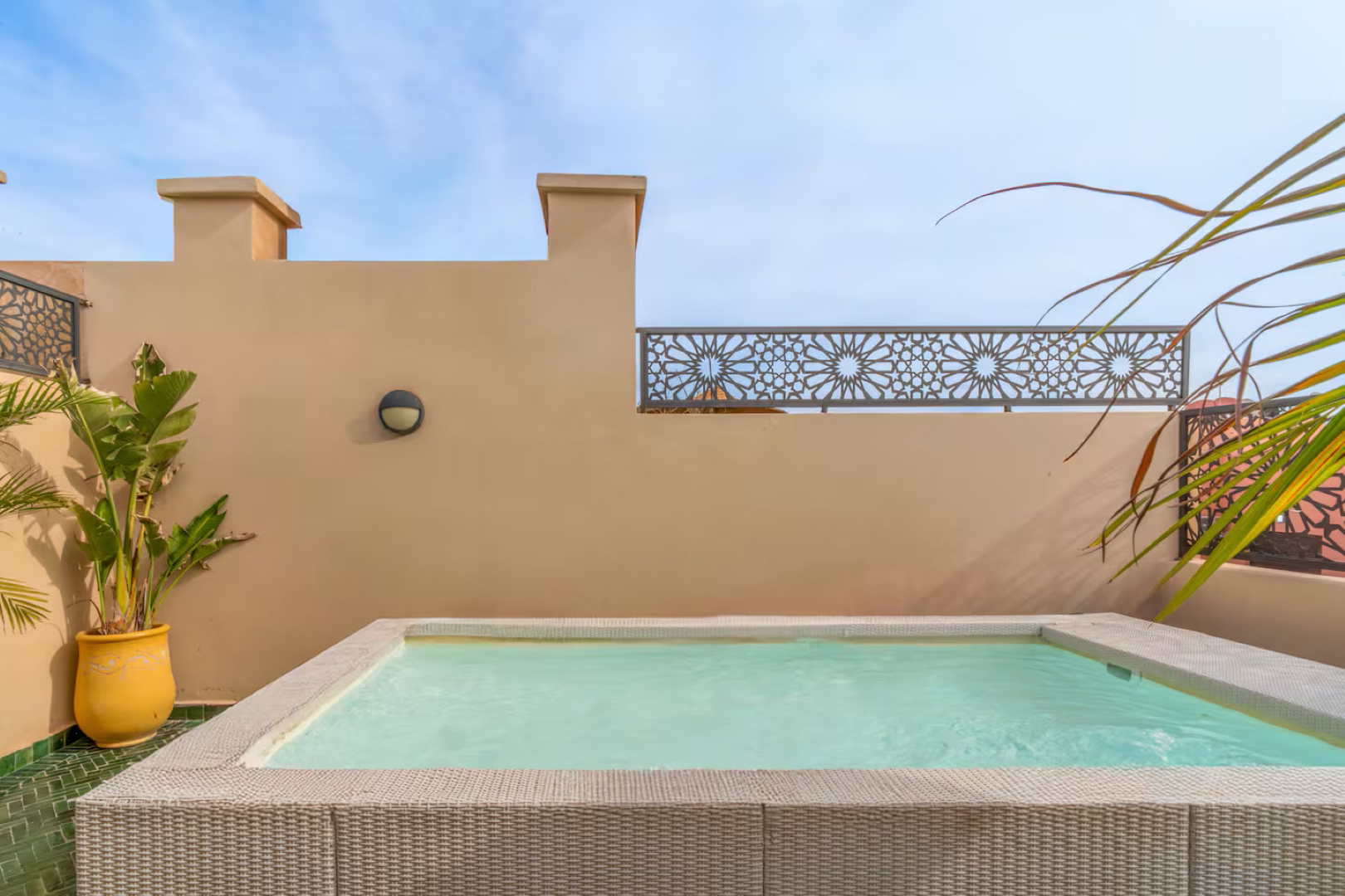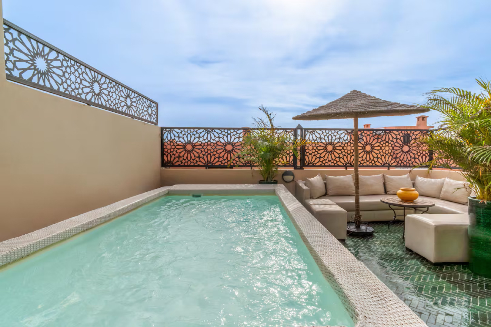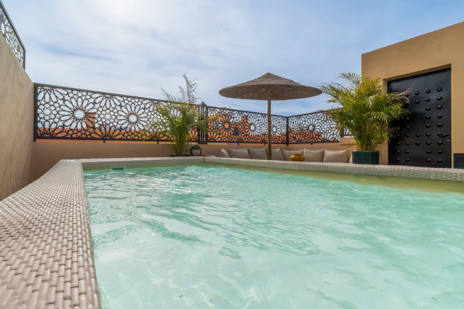 La terrasse vous offrira un moment privilégié de détente et de calme sous le soleil de Marrakech. Ainsi que la piscine privative entierement chauffée.