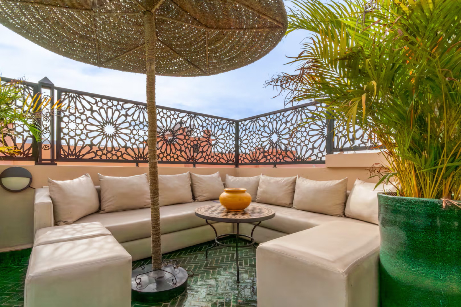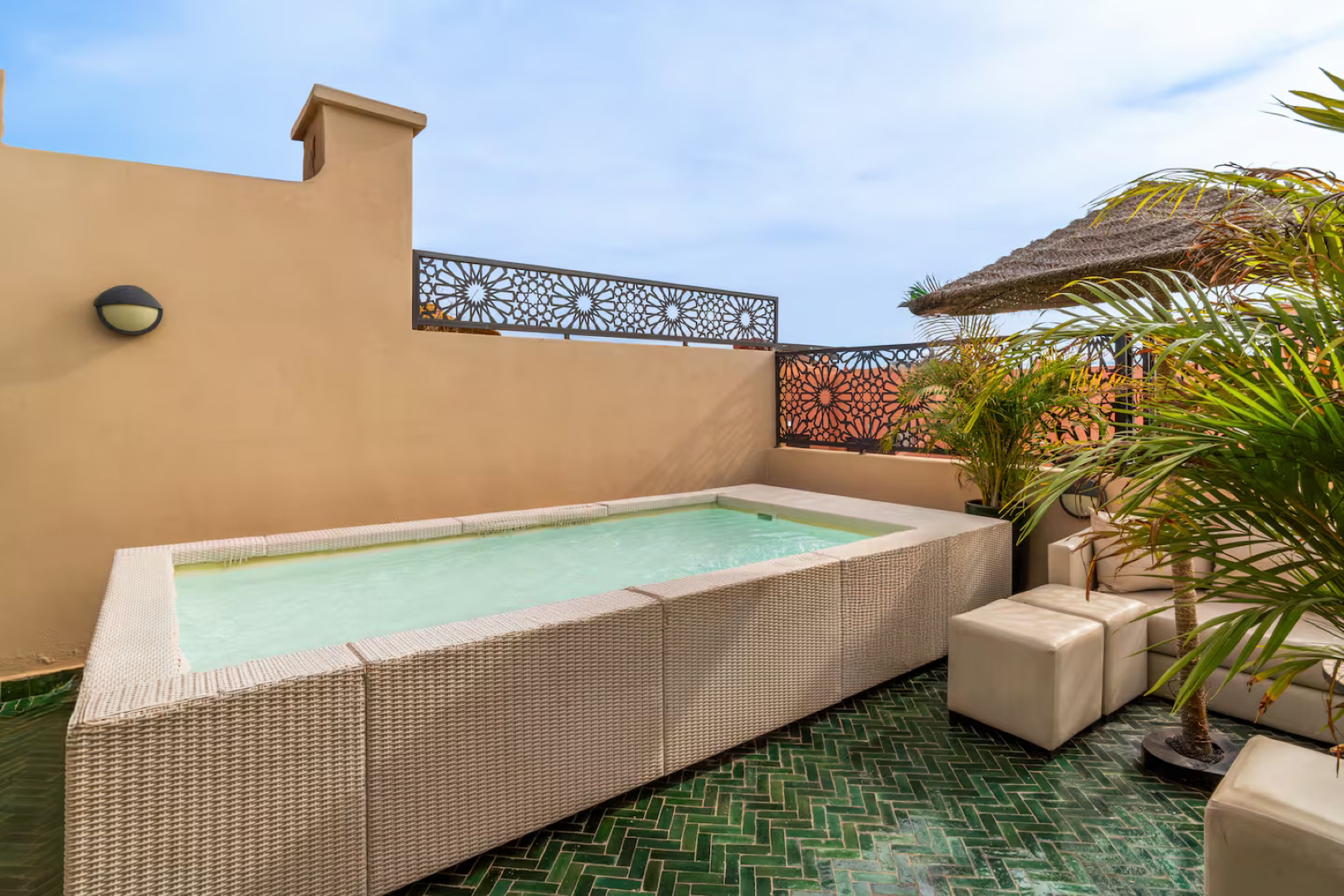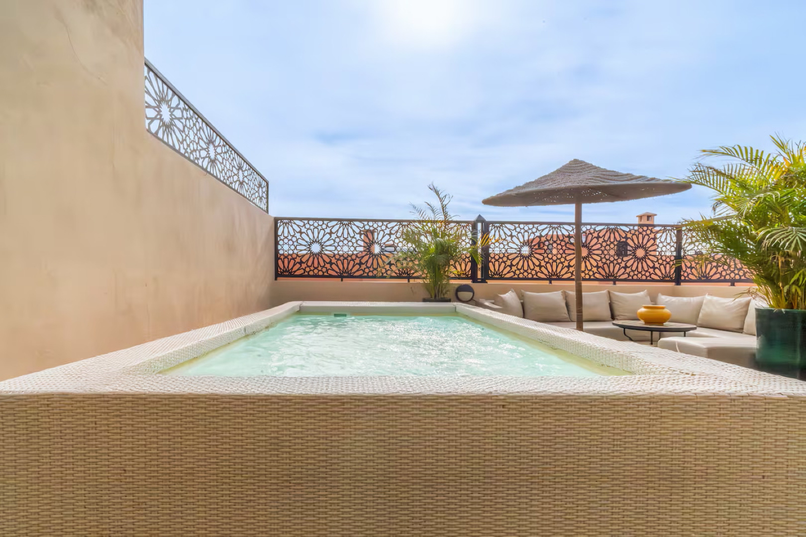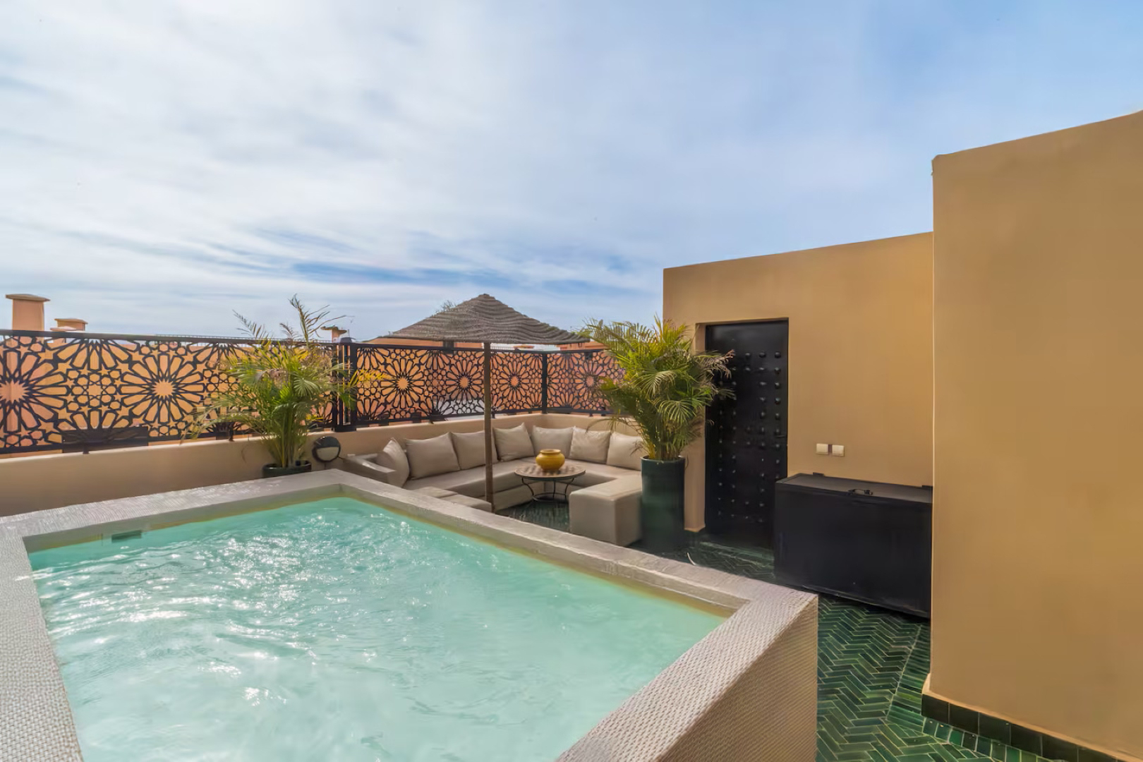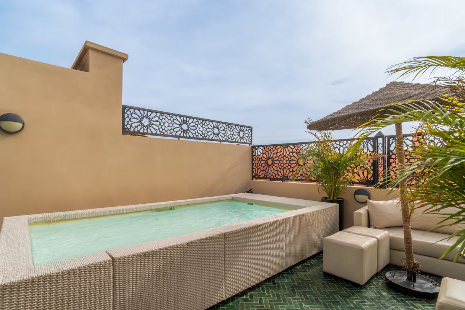 La terrasse vous offrira un moment privilégié de détente et de calme sous le soleil de Marrakech. Ainsi que la piscine privative entierement chauffée.
