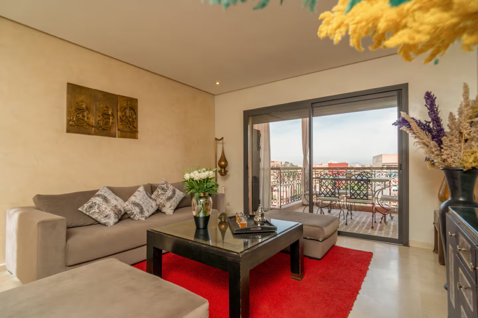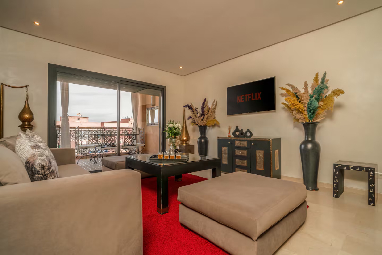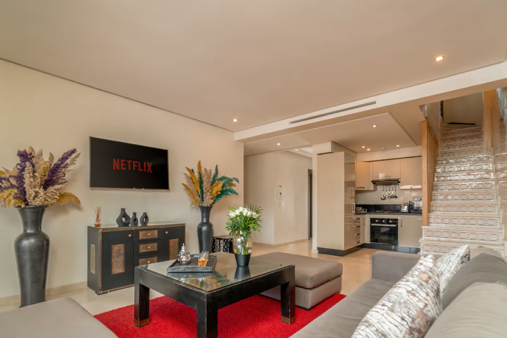Joli duplex équipé au cœur de Marrakech dans une résidence toute neuve 112m² habitable dont balcon et terrasse aménagée. 2 chambres, 1 sdb,une cuisine équipée.